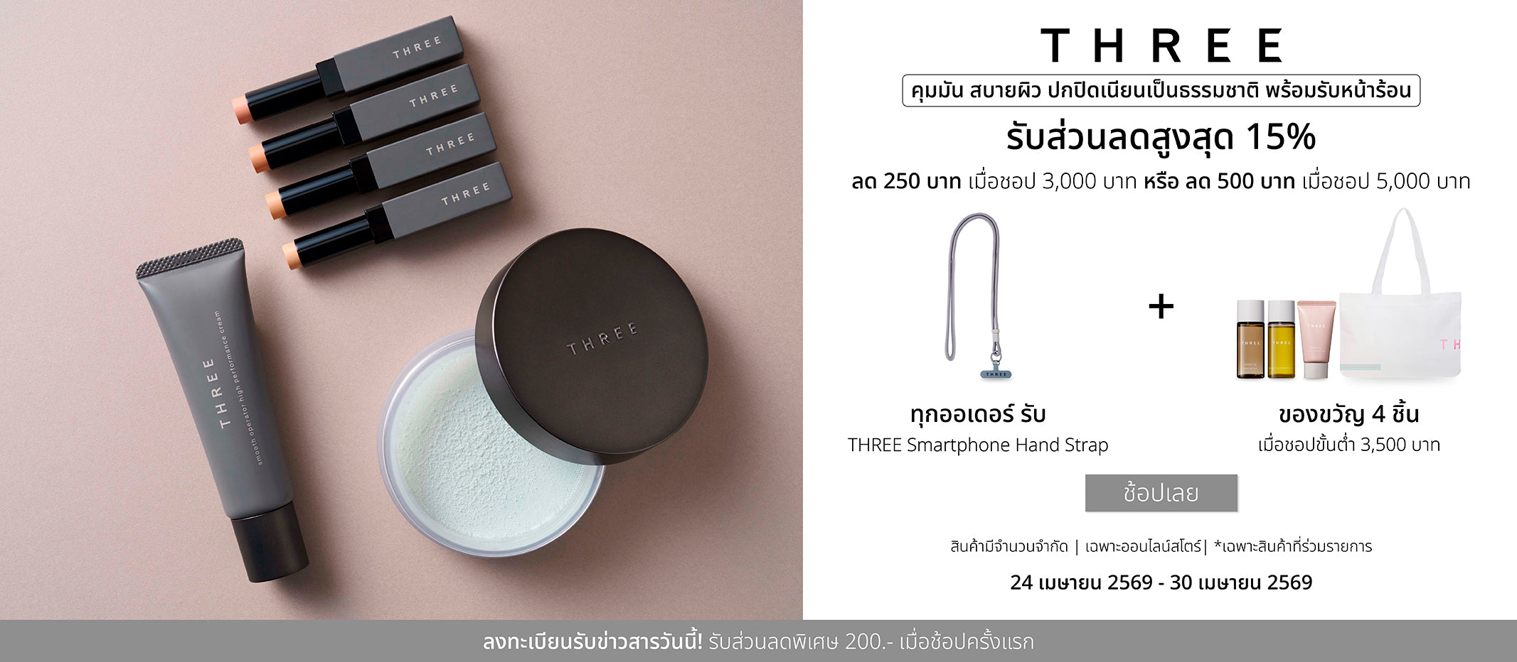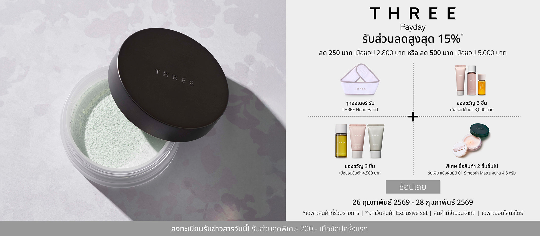 THREE 2026 Jubilee Collection ถ่ายทอดความตัดกันระหว่างสีเทาอ่อนของท้องฟ้าที่แฝงความเหงา กับดอกซากุระที่ค่อย ๆ ชัดเจนให้โดดเด่นยิ่งขึ้น